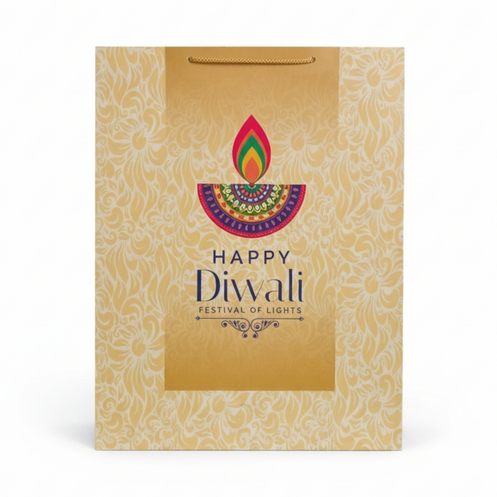 This festive paper gift bag blends elegance, strength, and sustainability. Its sturdy construction prevents tearing, while the vibrant Diwali design makes your gift stand out even before it’s opened.