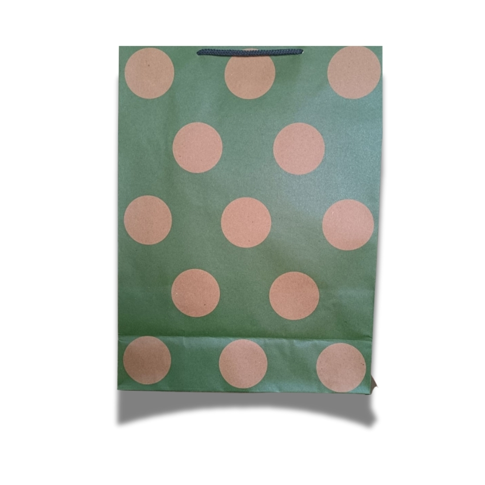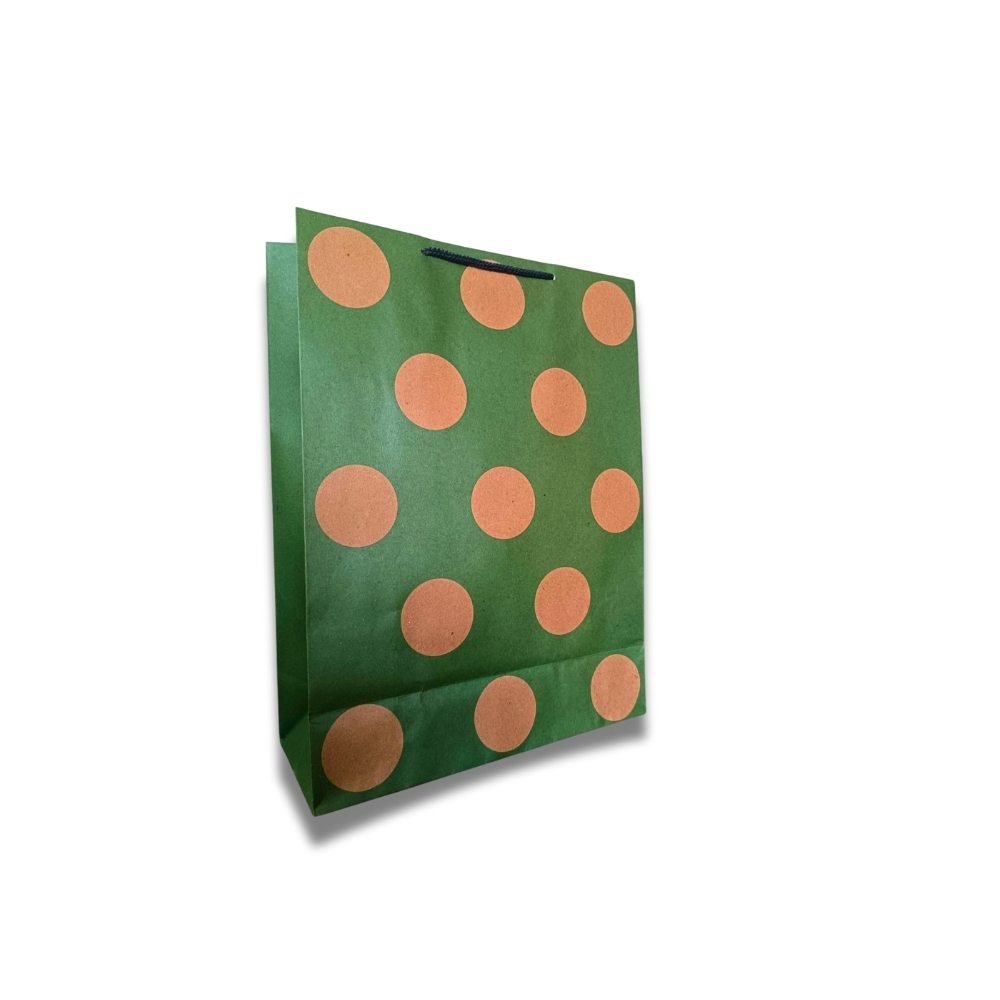 Bring joy and sustainability to every occasion with this premium green polka dot paper gift bag. Designed for style, strength, and eco-conscious gifting, this bag is the perfect alternative to plastic.