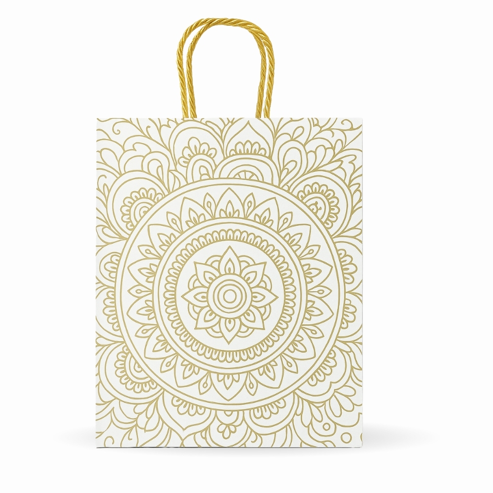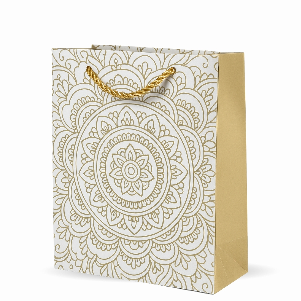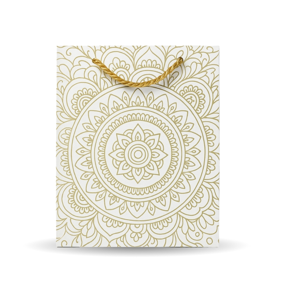 Elegant Festive Paper Gift Bag – Gold Mandala Design 8.5 x 7 x 3