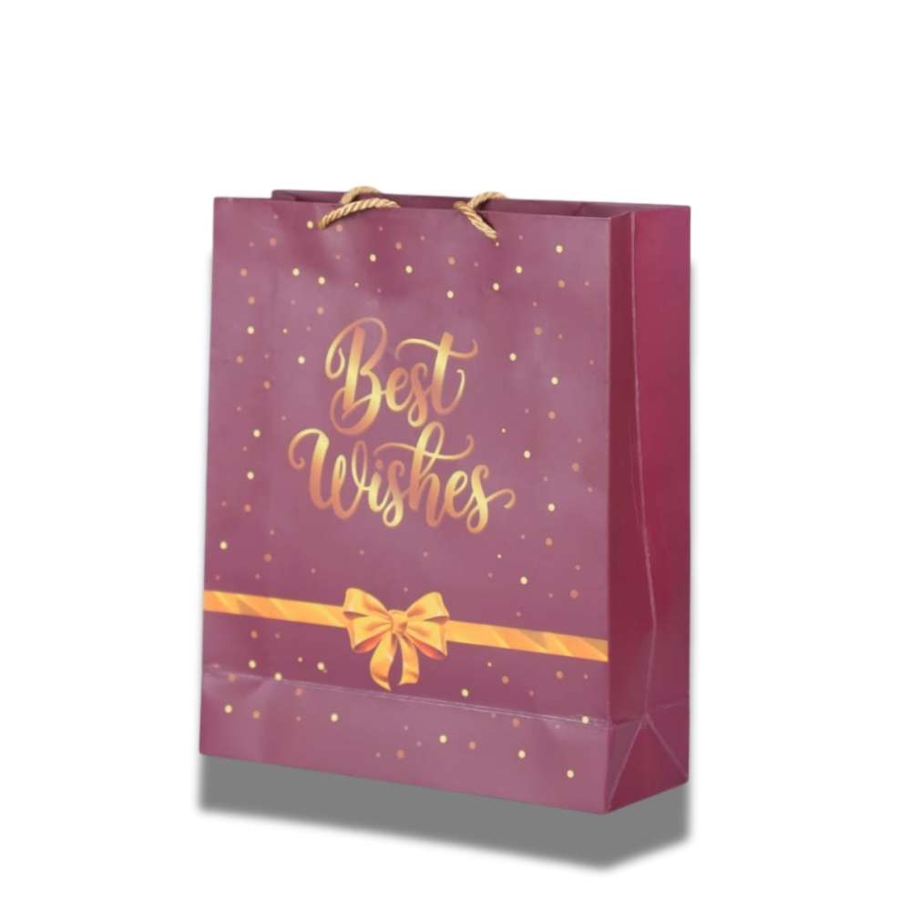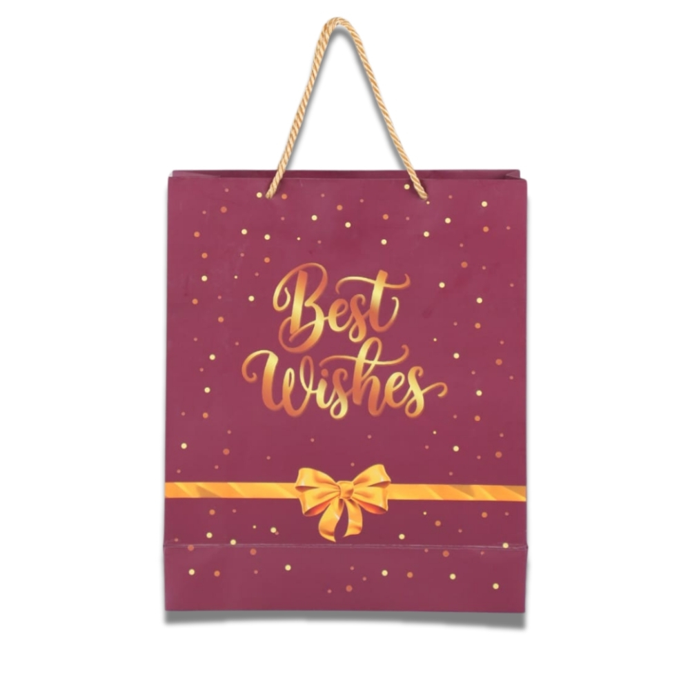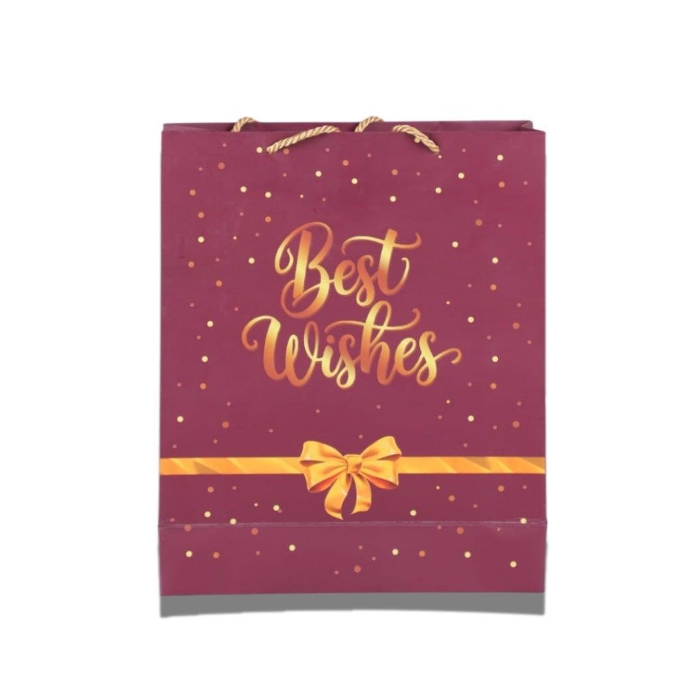 Add elegance to your gifting with our Premium 250 GSM Paper Gift Bag featuring a stylish maroon design with golden “Best Wishes” text and ribbon print. Crafted from high-quality 250 GSM thick paper, this bag ensures durability and a luxurious feel, perfect for making every occasion special.